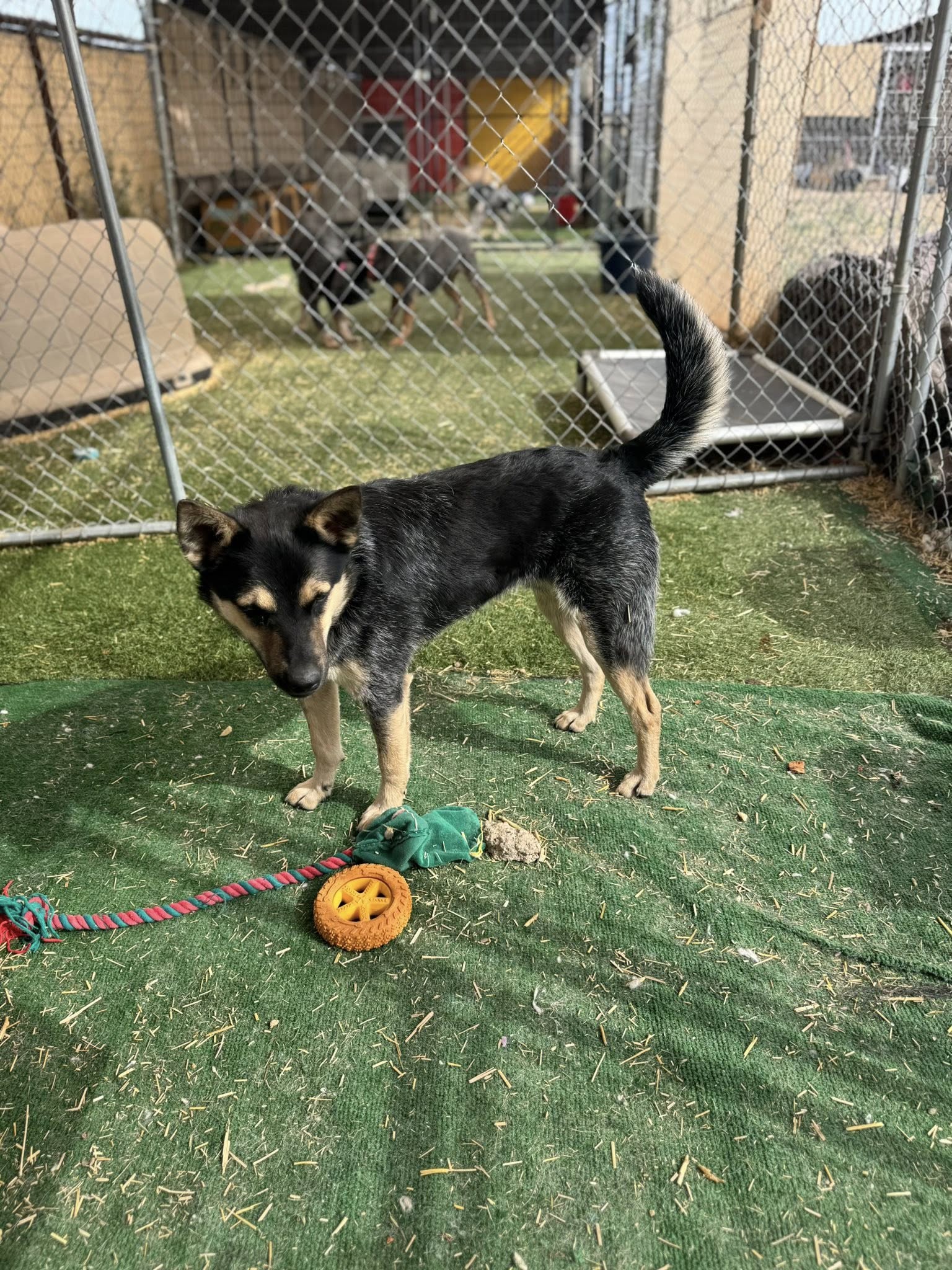 Age: 10 months š¾ Breed: Heeler š¾ Gender: Male (Neutered) š¾ Vaccinations: Up-to-date Juice is a spirited young Heeler pup with a heart as big as his drive to explore! At just 6 months old, heās already shown heās the leader of the packāconfident, curious, and ready to take on any adventure. Whether heās chasing after critters in the backyard, romping through the trails, or keeping a watchful eye over his people, Juice is always on the move and ready to work. As a true working breed, Juice thrives with purpose. Heās outdoorsy, alert, and naturally protectiveābut also a total sweetheart once he knows youāre part of his crew. He gives his whole heart to those he loves, and he’s eager for a forever home where he can bond deeply and continue to grow. Juice gets along well with other dogs and would enjoy a canine sibling to play with. He’s not been tested with cats yet, so a slow introduction would be best. Heās still learning his basic commands and manners, but heās smart, attentive, and eager to pleaseājust waiting for someone to guide him. Juice was found in Tonopah with his three siblings (all of whom have been adopted), and now itās finally his turn to find a loving home of his own. Could that be with you? š If youāre looking for a loyal, intelligent, and adventure-ready pup, Juice just might be your perfect match! He is neutered, chipped, vaccinated Intake 6-3-25 Tonopah